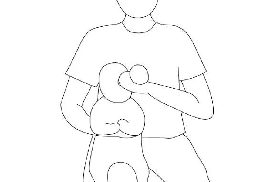 ✔️越肩法:讓寶寶下巴靠在你的肩膀上,一手托住頭部與肩膀,輕柔拍或撫摸背部。可一邊輕走。