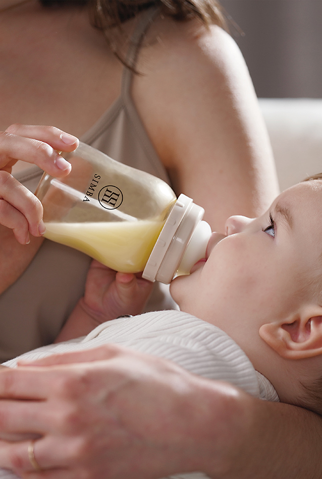 2.搭配小獅王辛巴奶瓶,與奶瓶中蓋需相互套緊到底,並與瓶口旋緊即組裝完成。