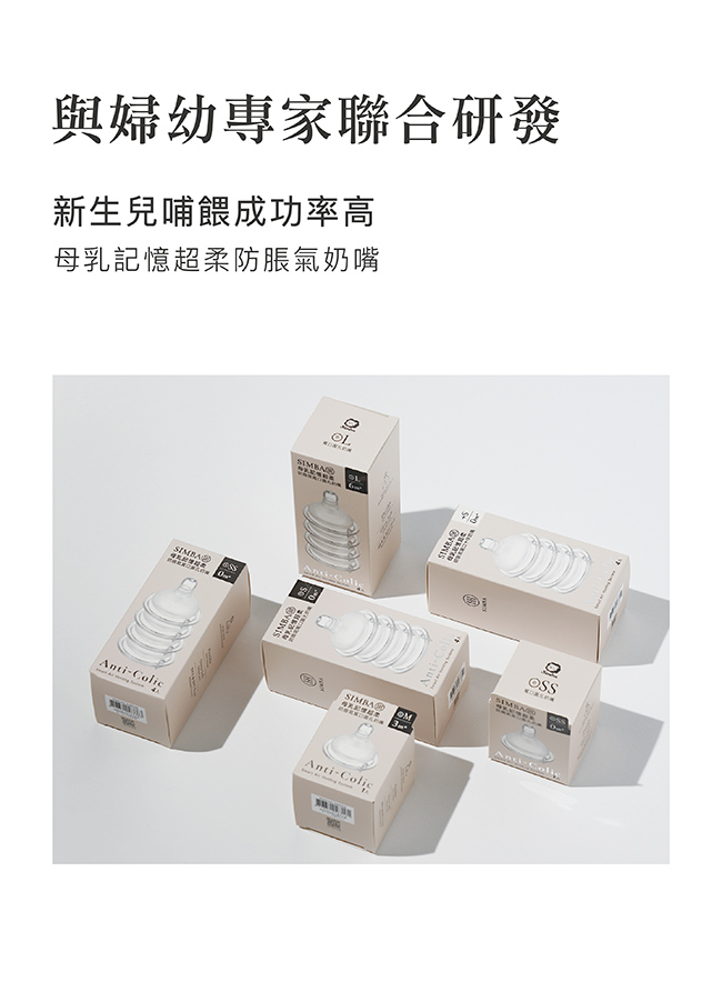 與婦幼專家聯合研發,醫院嬰兒室唯一指定,新生兒哺餵成功率高,母乳記憶超柔防脹氣奶嘴。