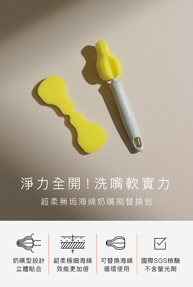 •本產品僅適用於超柔無垢海綿奶嘴刷。