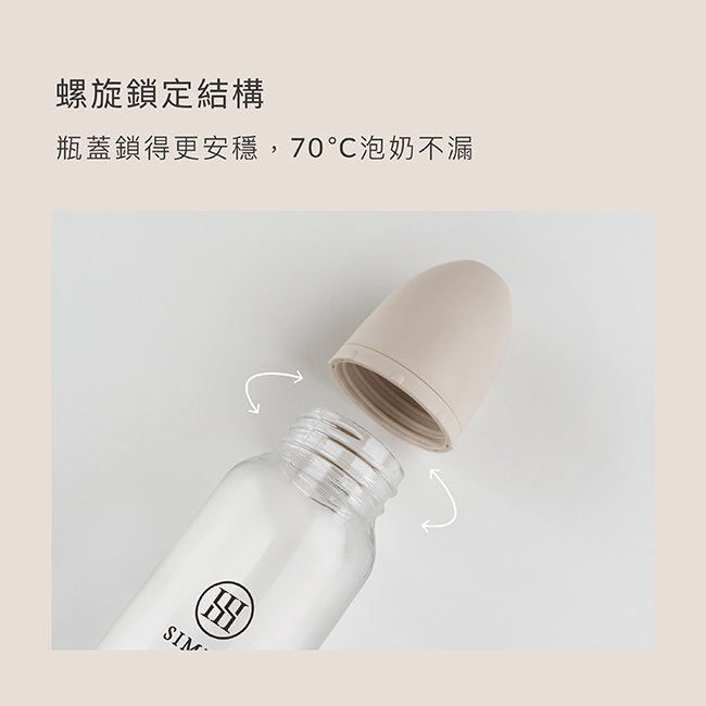 4. 螺旋鎖定防漏結構,瓶蓋密封性極佳,70˚C泡奶不漏。