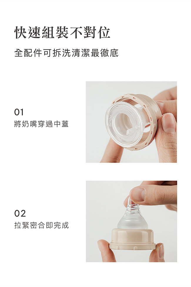 3. 奶瓶中蓋省力凸點,輕鬆組裝不費力。