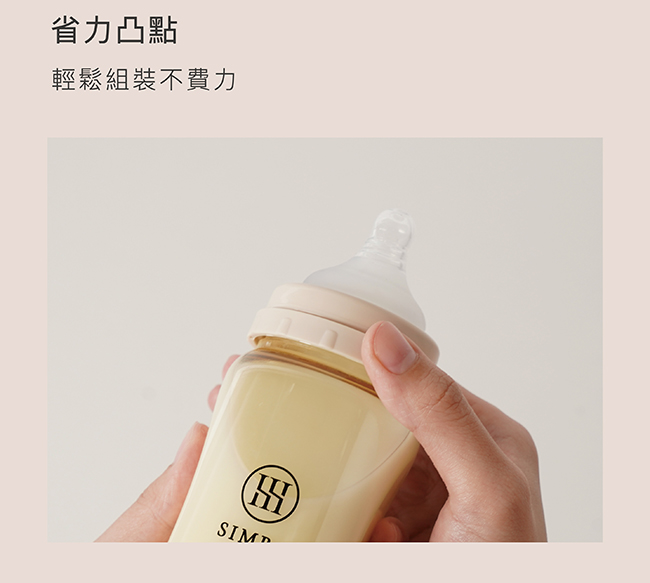 3.奶瓶中蓋省力凸點,輕鬆組裝不費力。