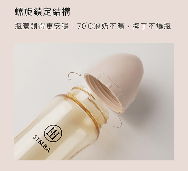 4.螺旋鎖定防漏結構,瓶蓋密封性極佳,70˚C泡奶不漏,摔了不爆瓶。