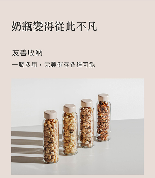 1. 友善收納,一蓋即變身儲乳瓶、輔食罐、零食罐…等萬用瓶。