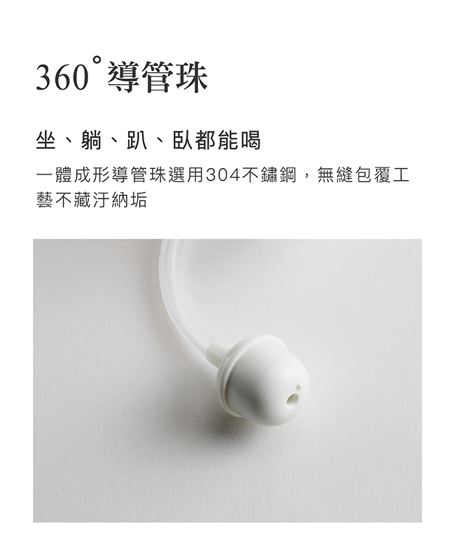 3.360˚導管珠,坐、躺、趴、臥都能喝。