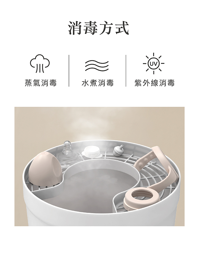 5.配件全拆洗清潔最徹底,可蒸氣、水煮、紫外線消毒。