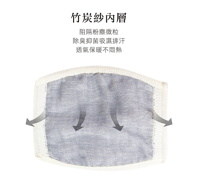 3.天然竹炭紗可除臭、吸濕排汗、蓄熱保暖,有效阻擋空氣中灰塵微粒,預防過敏源。