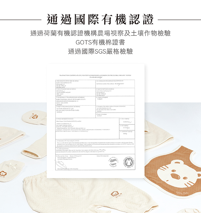 1.100%天然有機棉布、通過荷蘭CU國際有 機認證。