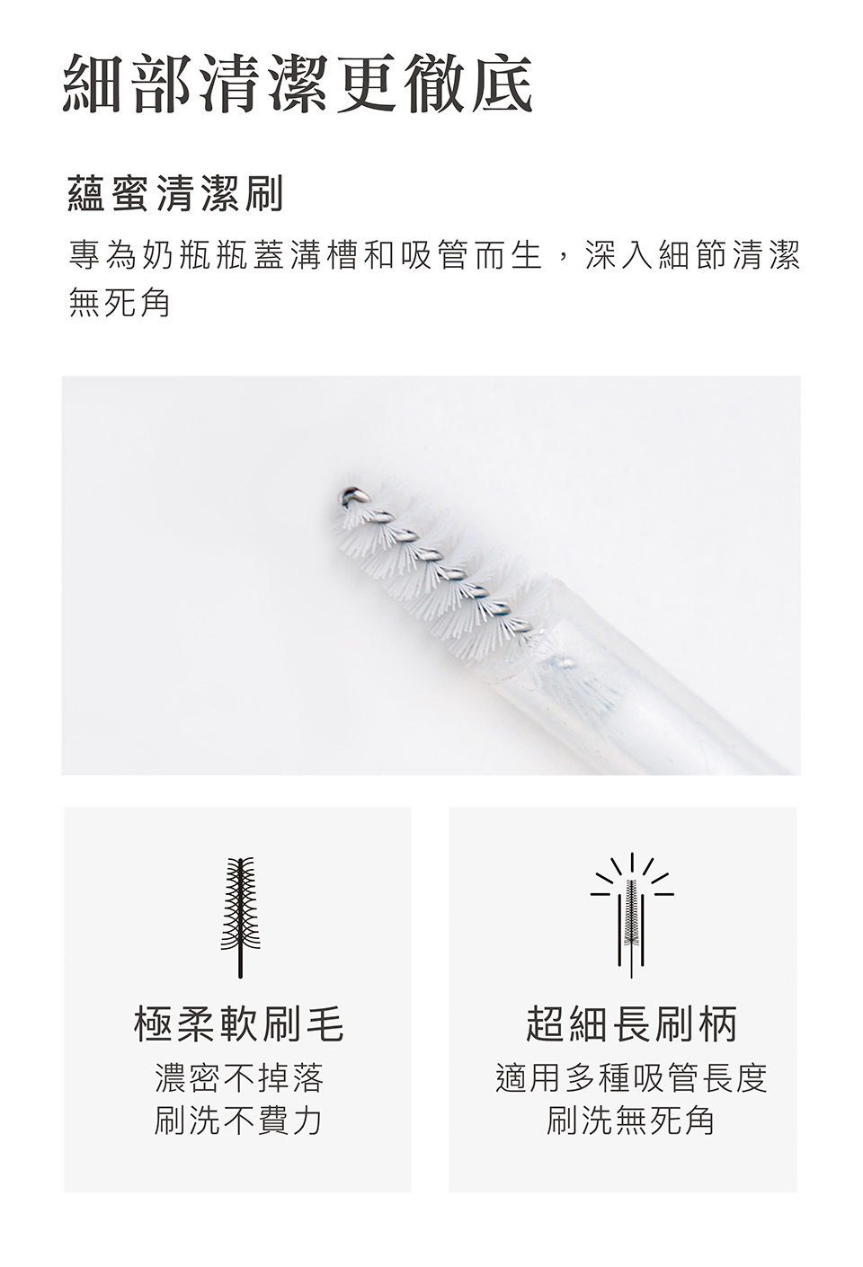 -超細長刷柄,適用多種吸管長度,刷洗無死角。