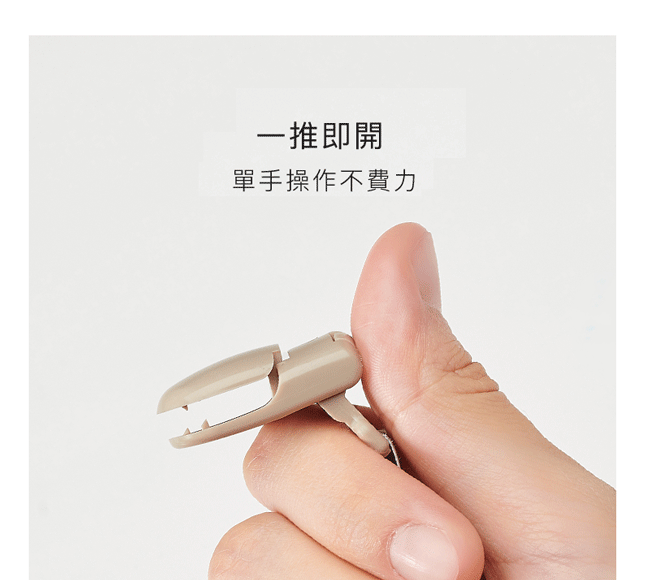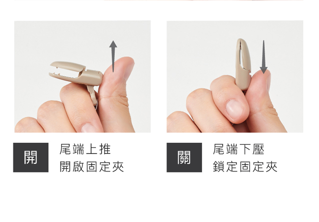 1. 彈跳式固定夾,一扣即合且不傷衣布,厚薄衣物都能穩穩夾住。