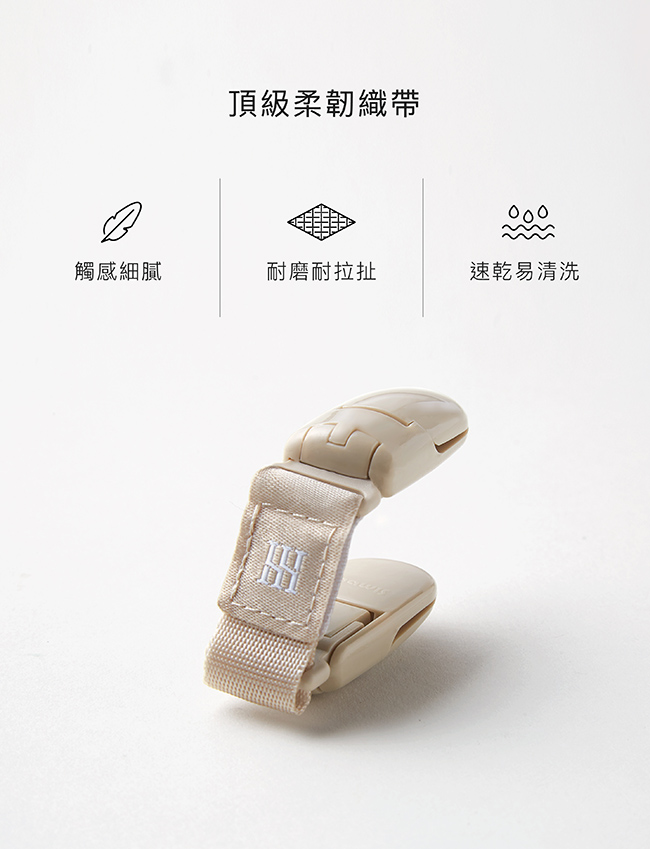 2. 頂級柔韌織帶,觸感細膩、耐磨耐拉扯、速乾易清洗。
