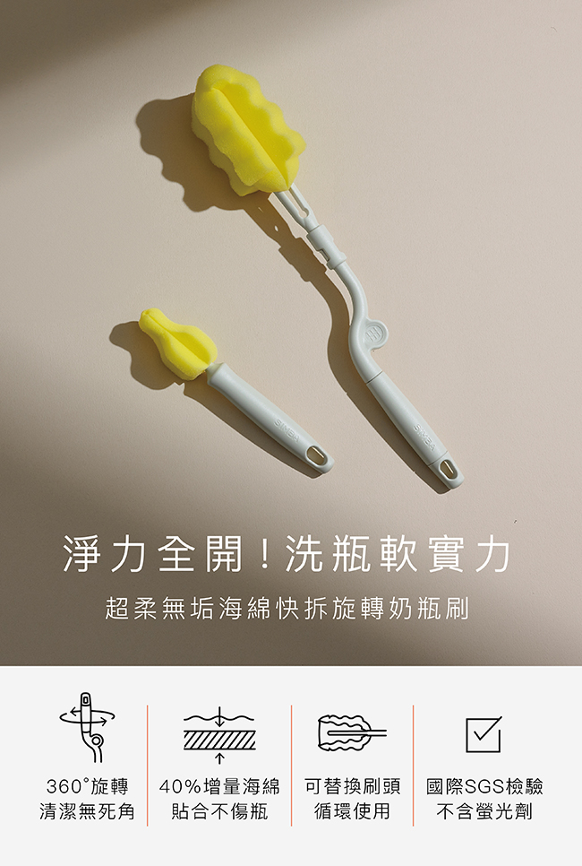 超柔無垢海綿快拆旋轉奶瓶刷替換刷頭(1入)。