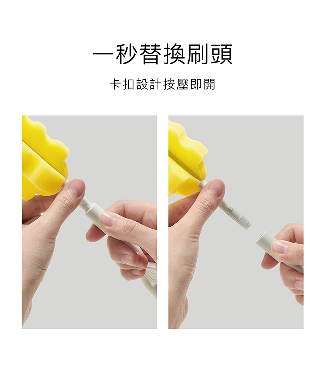 6.可替換海綿,卡扣設計即開即換,刷柄永續循環使用。