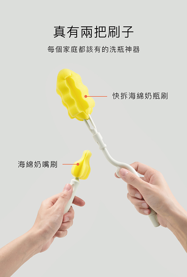 可搭配奶瓶清潔劑使用,深入瓶身360°旋轉刷洗,洗淨後懸掛於通風處晾乾。