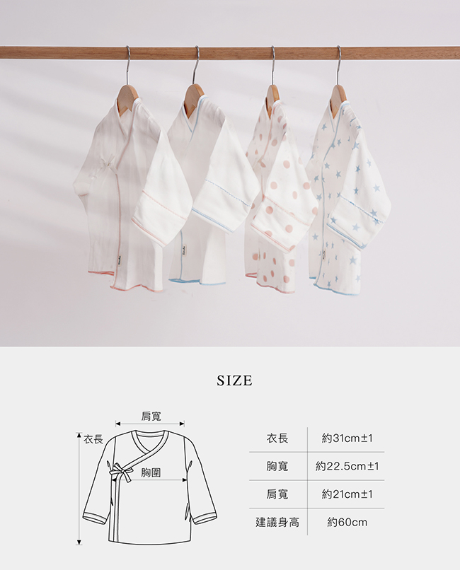●尺寸:60cm(約0-6個月)/胸寬約22.5cm/肩寬約21cm/衣長約31cm