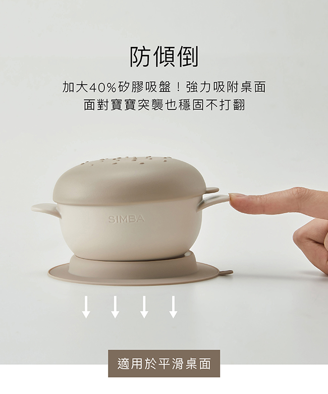 3. 加大40%矽膠吸盤!強力吸附桌面,面對寶寶突擊也穩固不打翻。