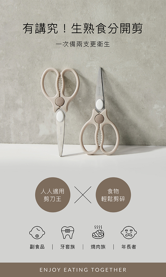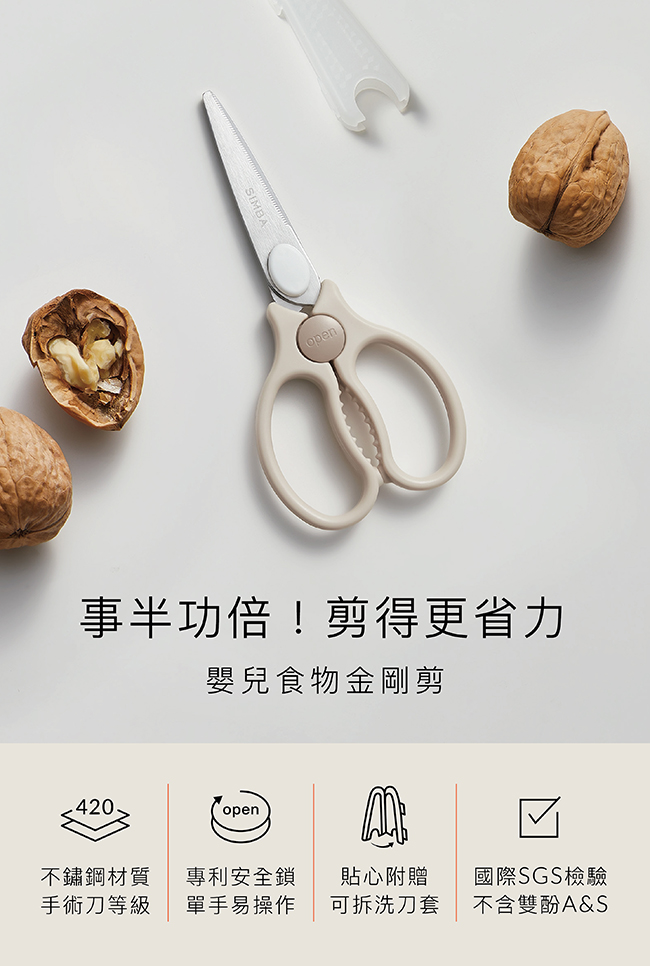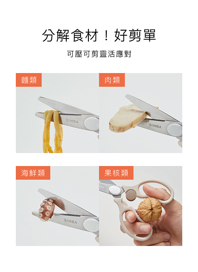 •食物剪刀刃鋒利,請注意安全小心使用,並避免剪硬質食物或物品,以免造成損壞。