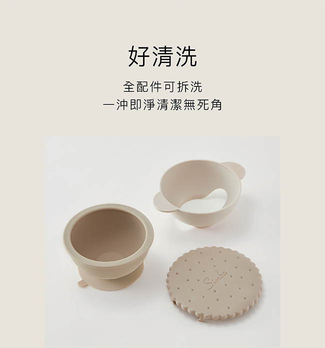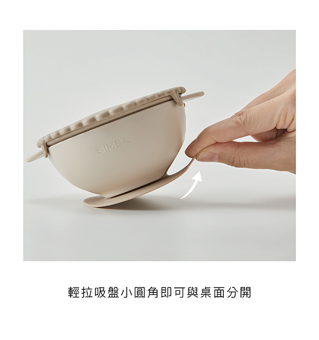 4. 矽膠吸盤強力可吸附桌面,面對寶寶突擊也穩固不打翻。