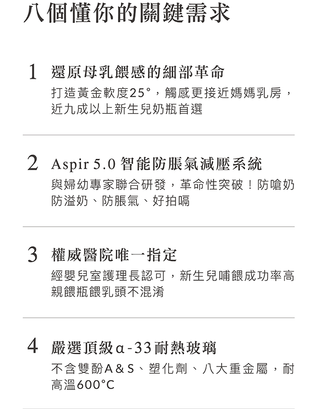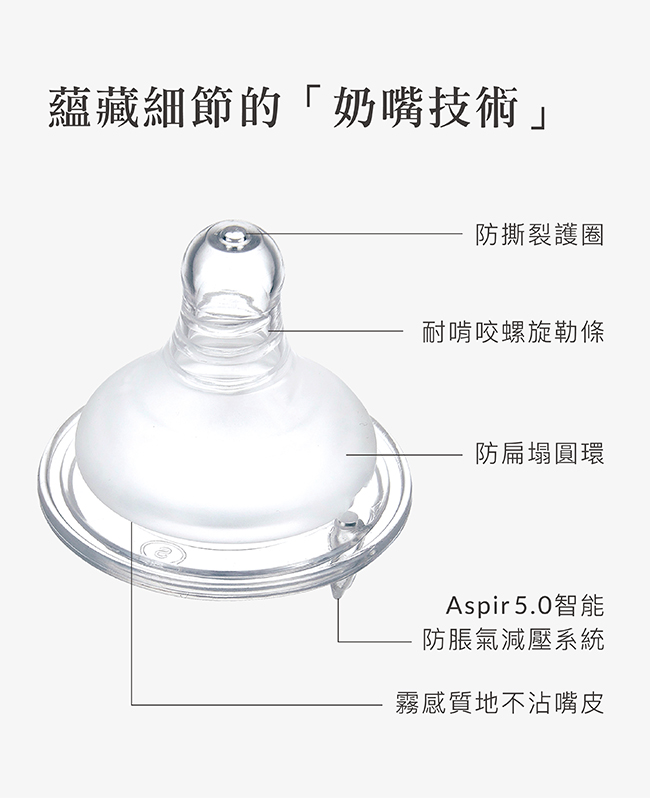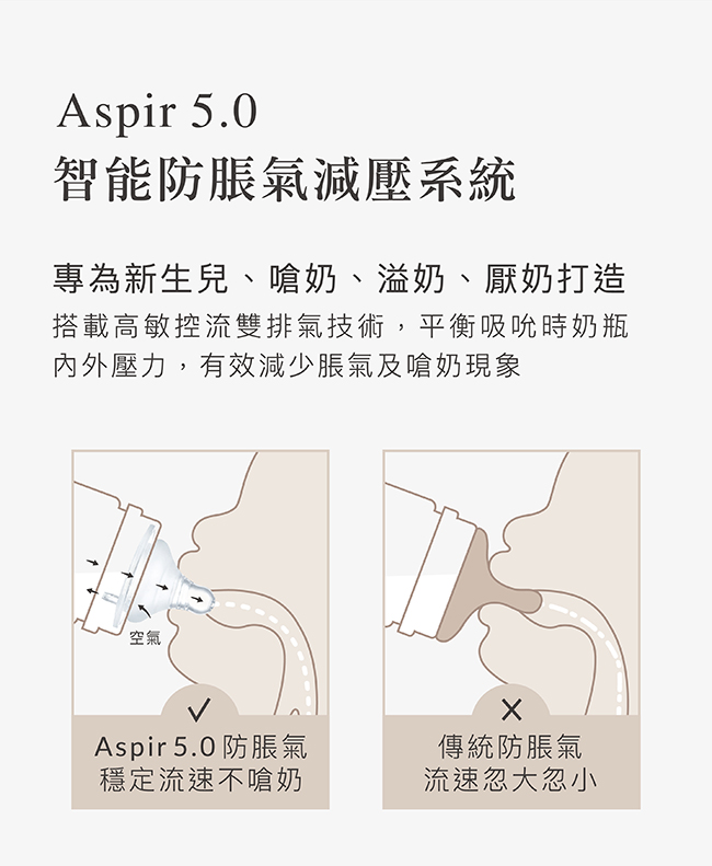 2.Aspir 5.0智能防脹氣減壓系統,防嗆奶、防溢奶、防脹氣。