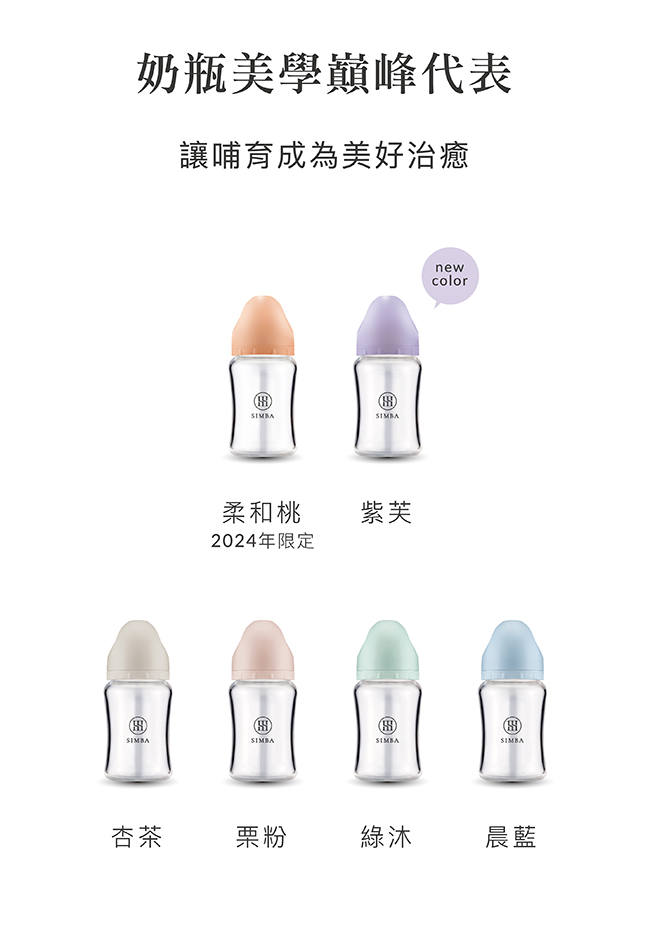 新生兒奶瓶之最,95%好拍嗝有感!小獅王辛巴擁有30年日積月累的製瓶經驗,直擊新生家庭的需求,再次打造顛峰水準的奶瓶之作。蘊蜜質金玻璃防脹氣奶瓶與婦幼專家聯合研發,更懂你的需求,實現夢寐以求的哺育體驗。