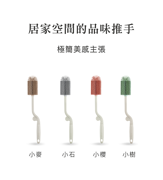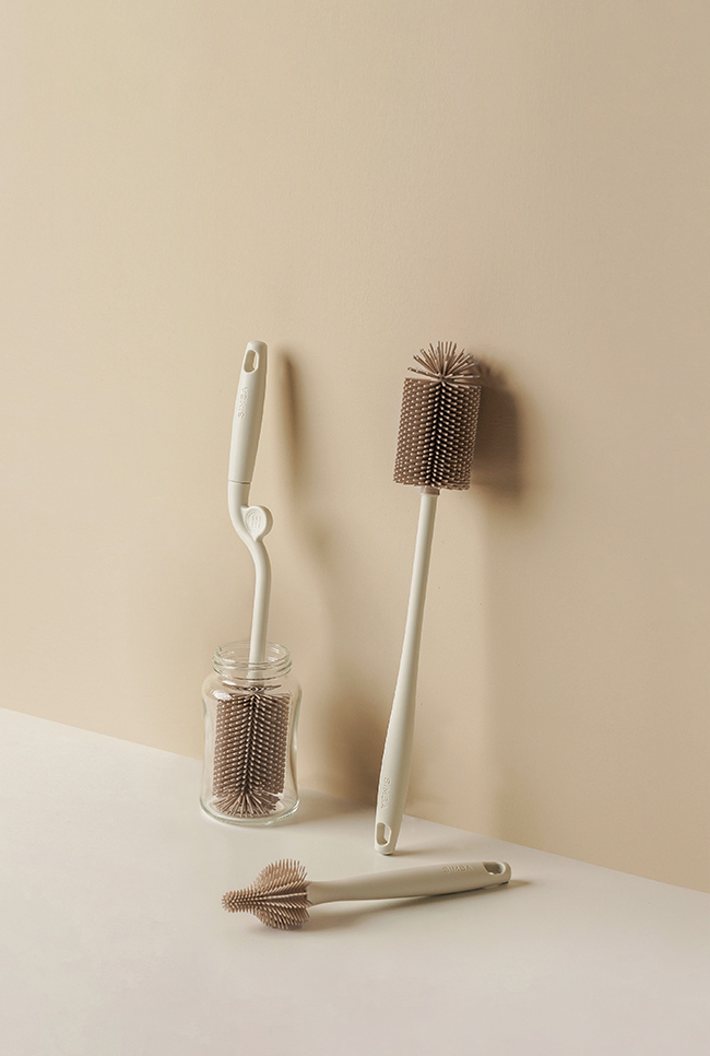 可搭配奶瓶清潔劑使用,深入瓶身360°旋轉刷洗,洗淨後懸掛於通風處晾乾。