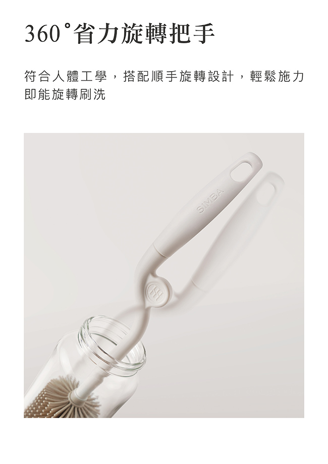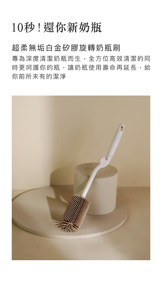 3. 零死角貼合瓶身,輕易將奶瓶內側與瓶底清潔乾淨。