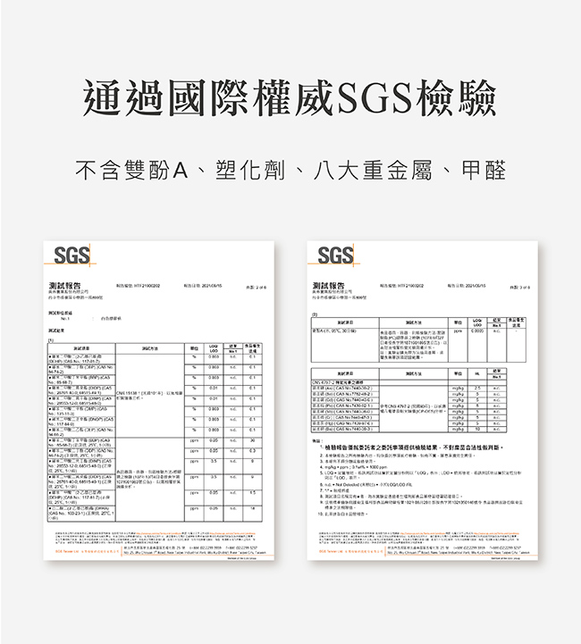 9. 通過國際權威SGS檢驗,不含雙酚A、塑化劑。