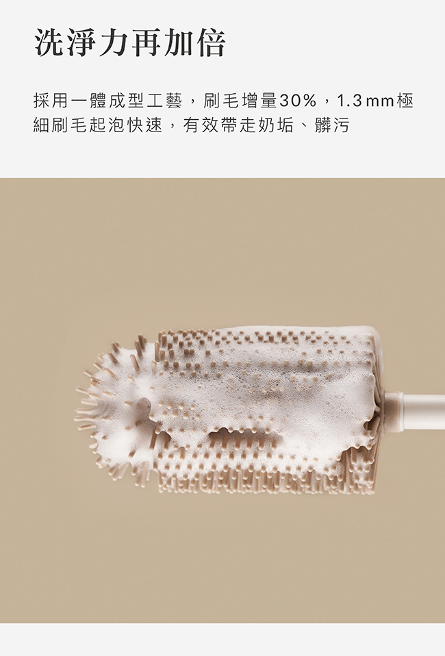 2. 刷毛增量30%!快速起泡,洗淨效果加倍,有效帶走奶垢、髒污。
