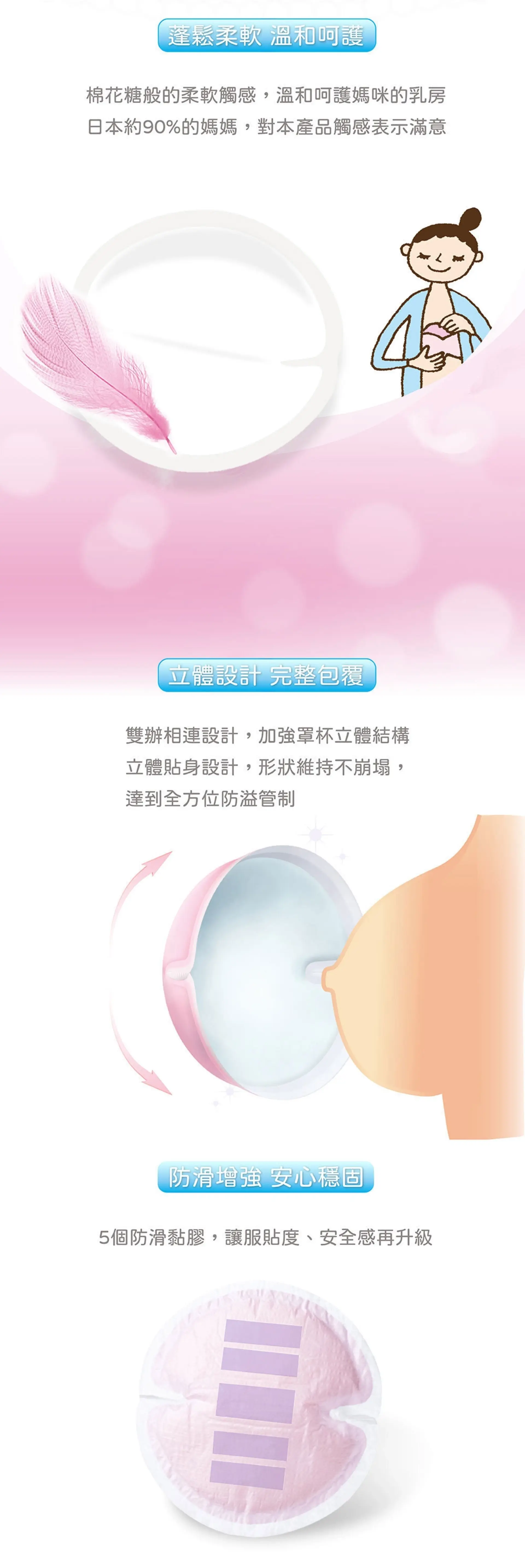 吸收母乳黏膩感不殘留:新表面材質,提升50%的鎖水效能,常保乾爽舒適