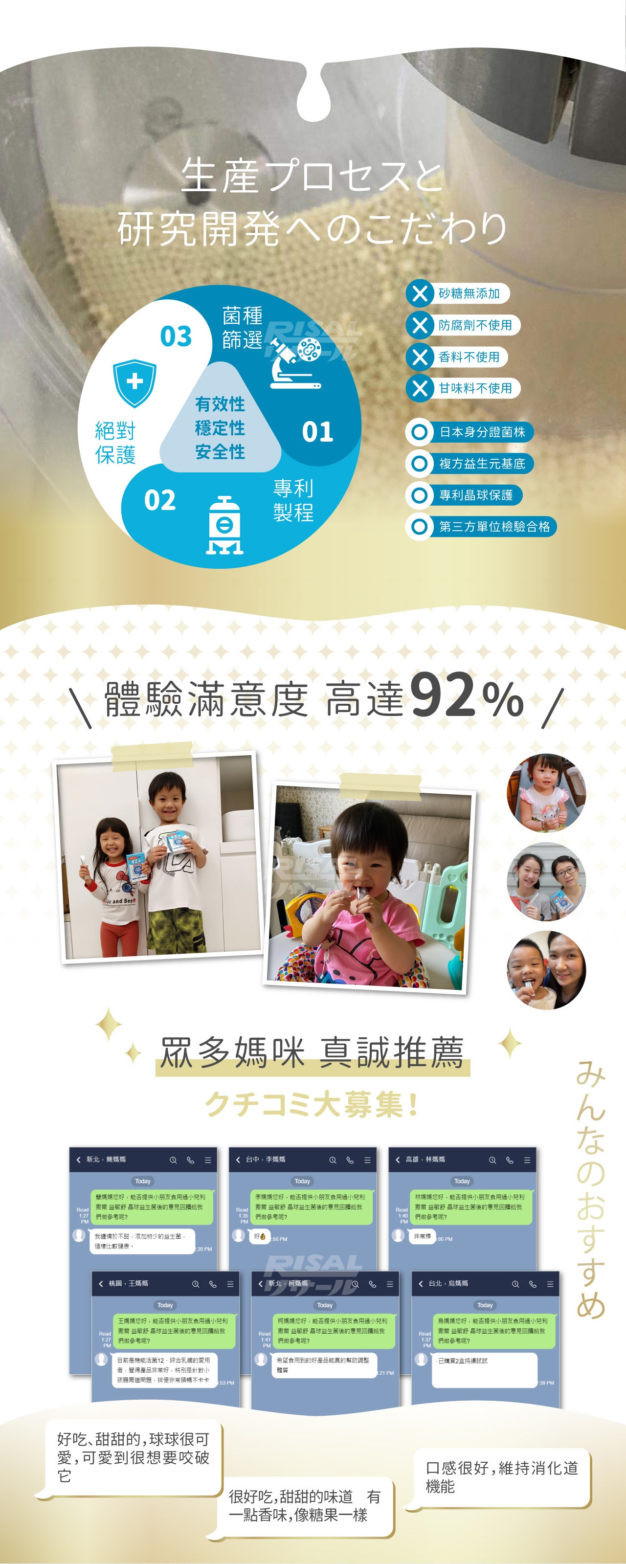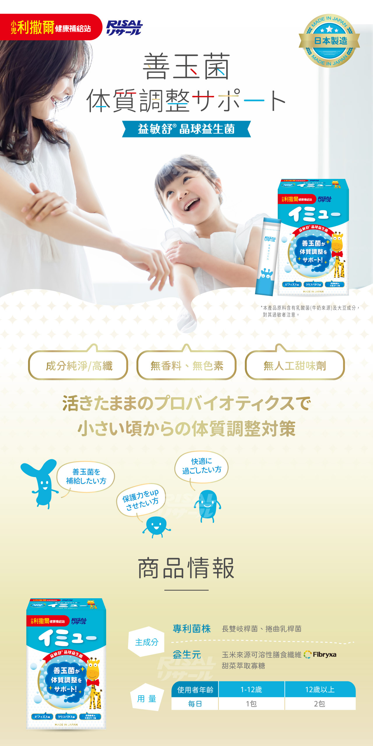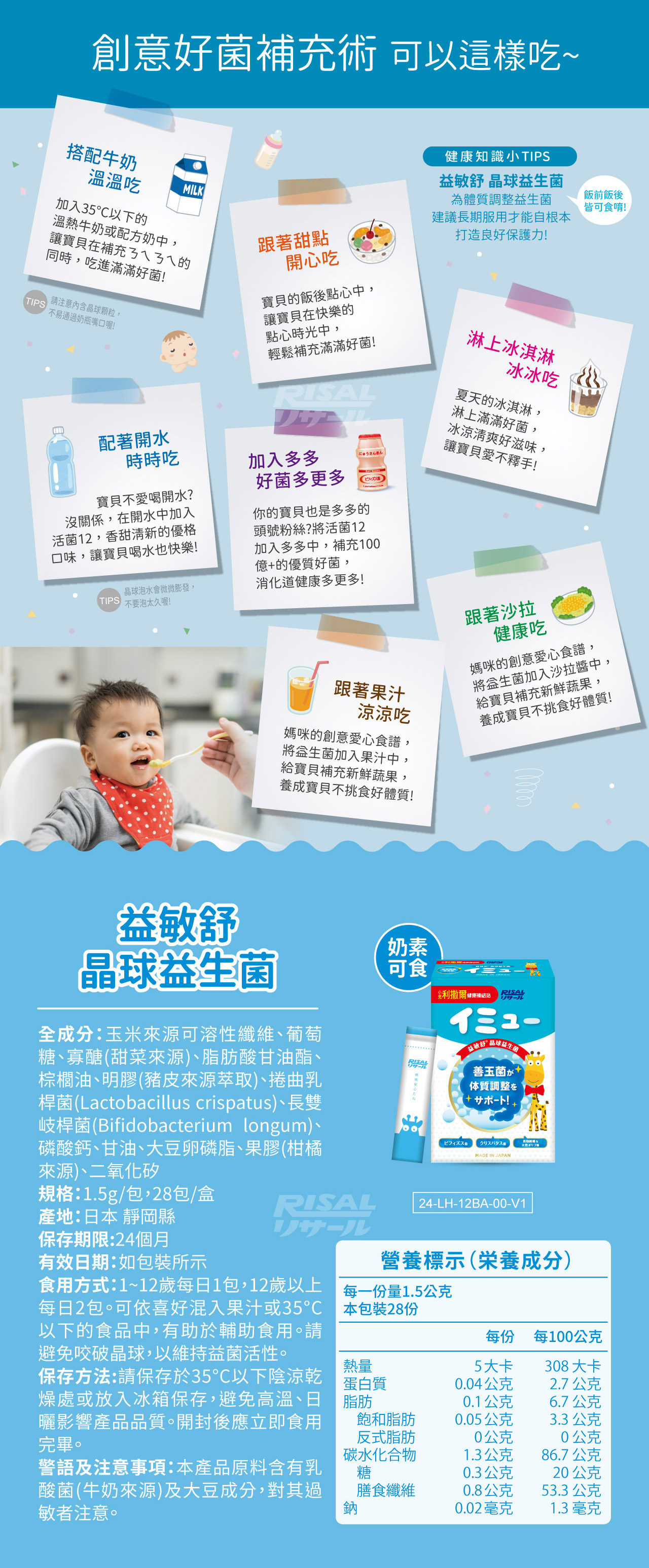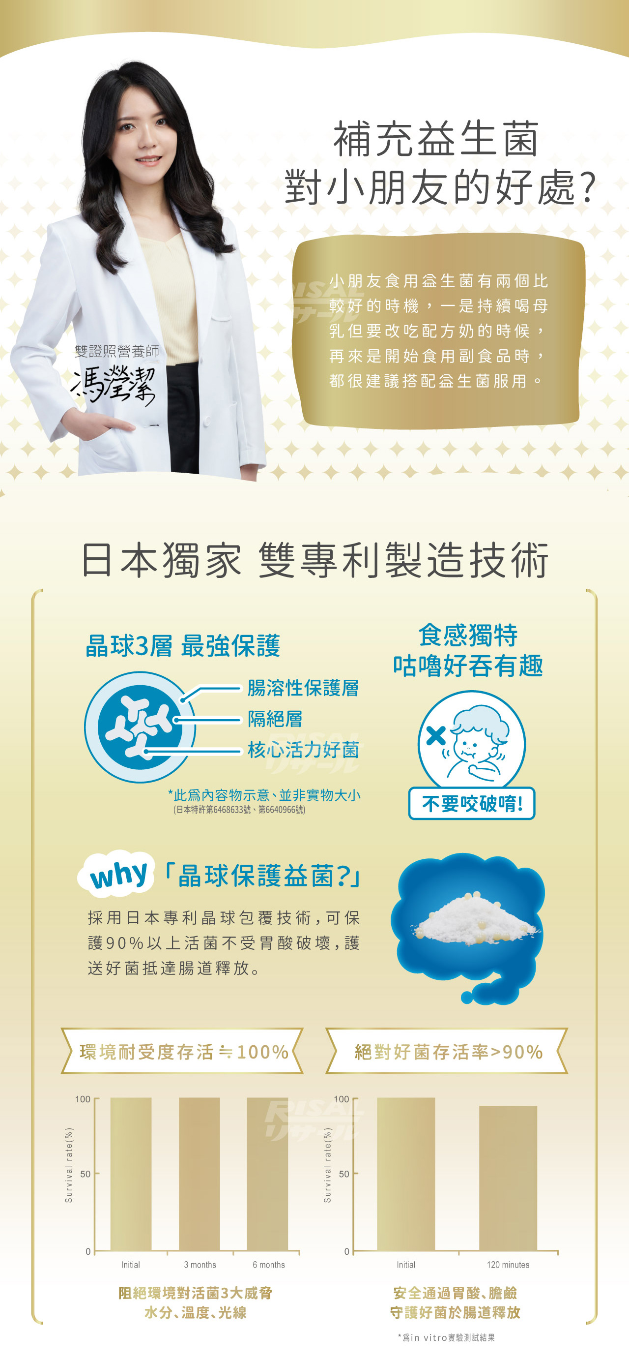 食用方式:1~12歲每日1包,12歲以上每日2包,食用後請多喝開水。可依喜好混入果汁或35゚C以下的食品中,有助於輔助食用。請避免咬破晶球,以維持益菌活性。