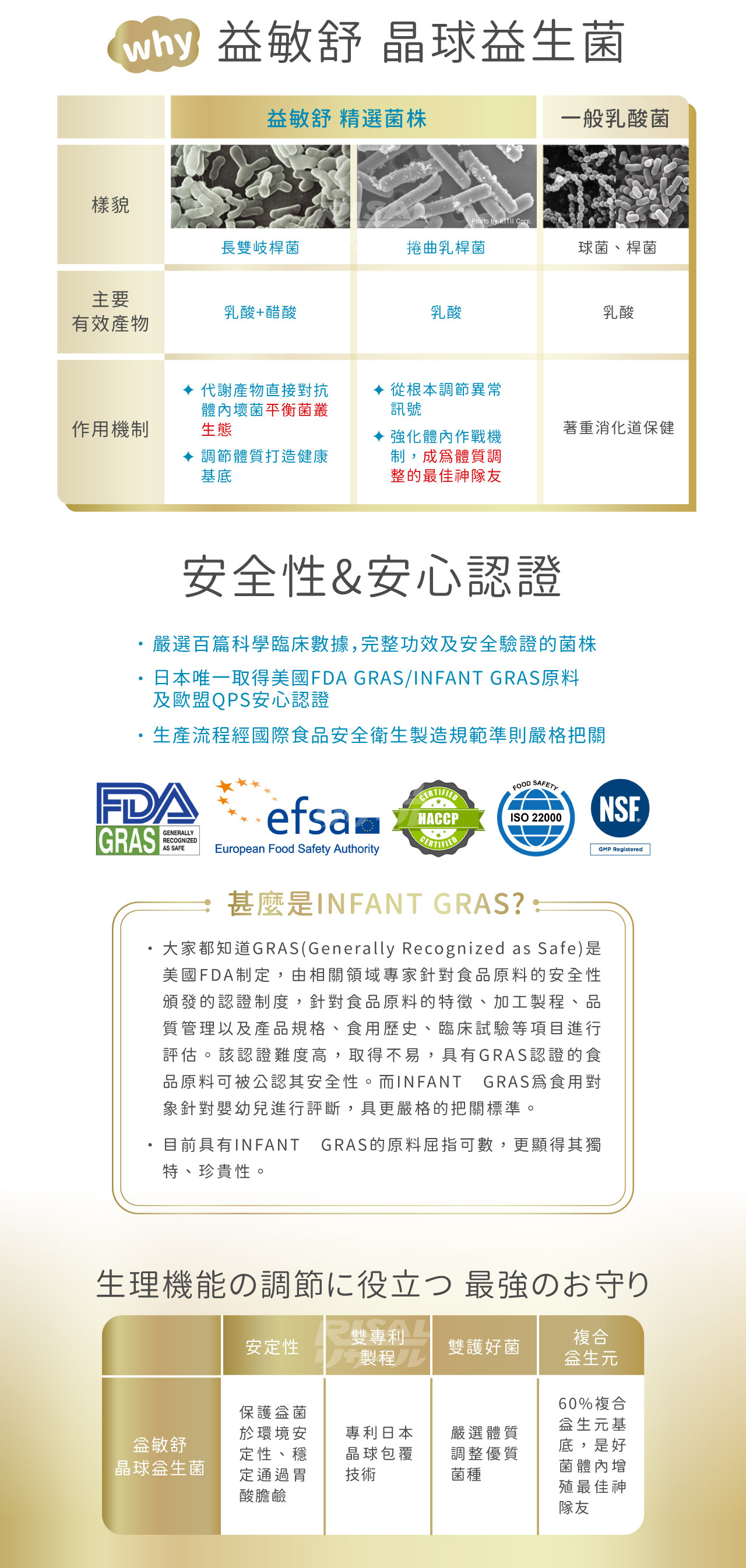 注意事項:本產品原料含有乳酸菌(牛奶來源)及大豆成分,對其過敏者注意。晶球內含活性益生菌成分,食用時請勿咬破以確保益生菌活性。