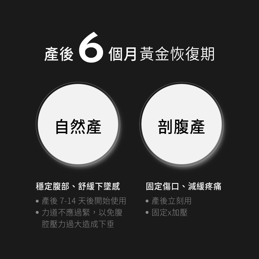 1.自然產:產後可立即使用 ※力道不應過緊,以免腹腔壓力過大造成下垂