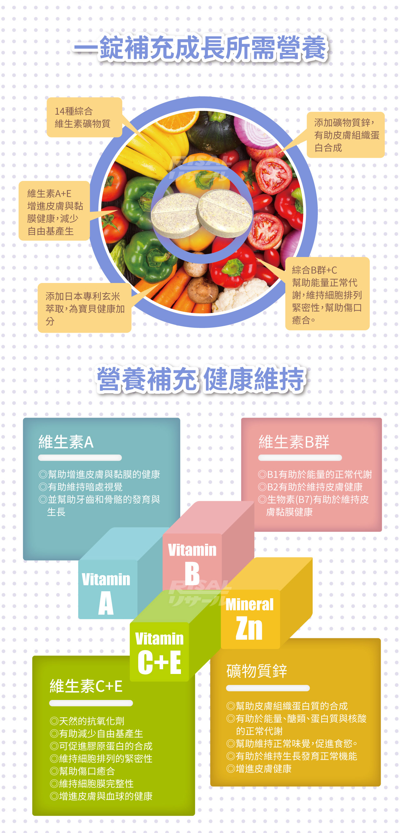 添加14種綜合維生素與礦物質,營養補給、調整體質