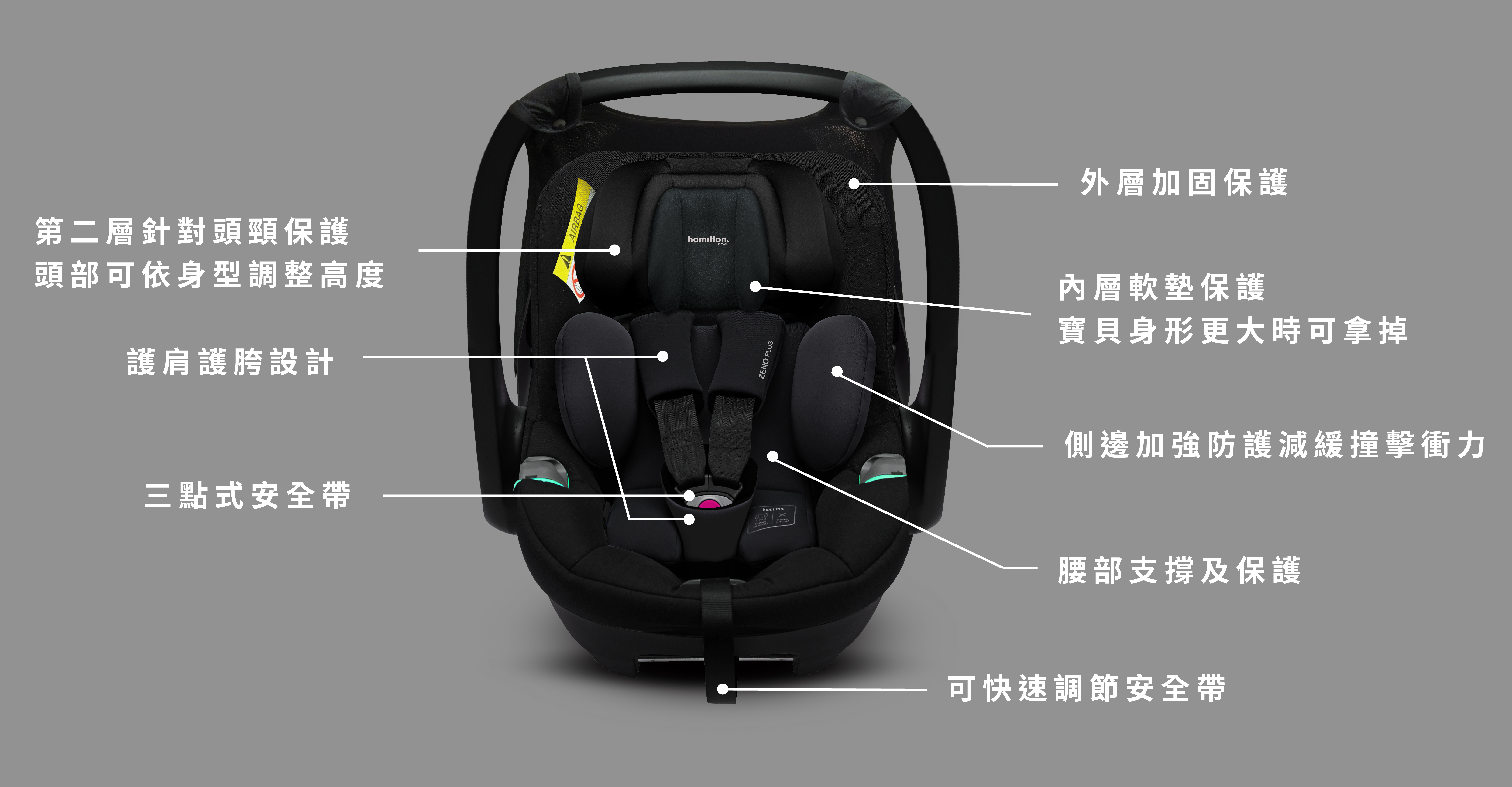 1. 三層加固增強頭頸保護,寶貝出行超安全。