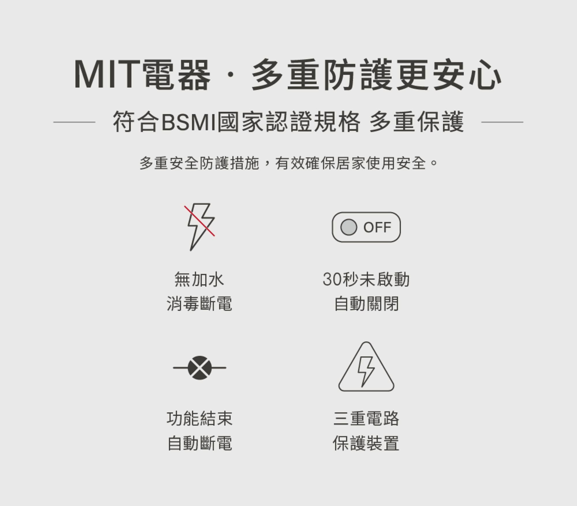 ※多重安全防護開關, 符合BSMI規範, 確保使用安全