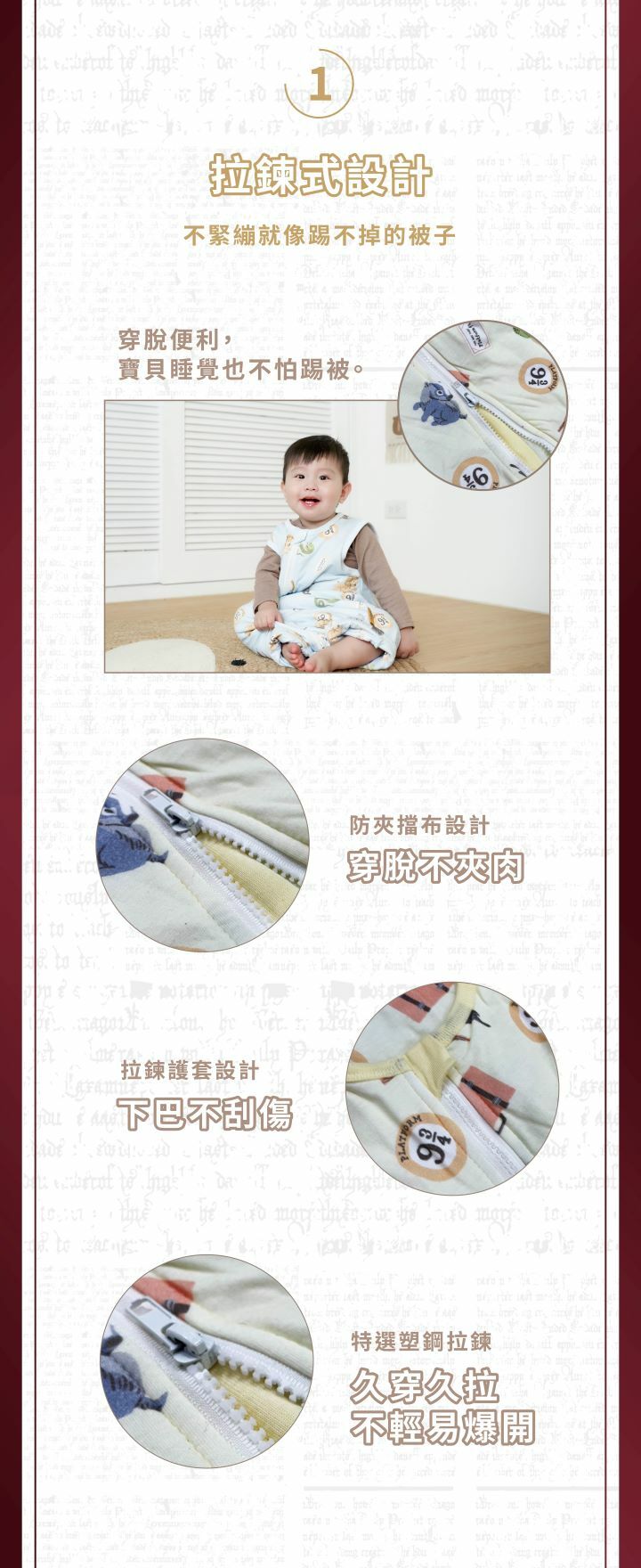 1. 拉鍊設計就像踢不掉的被子、安心舒適一覺到天亮。