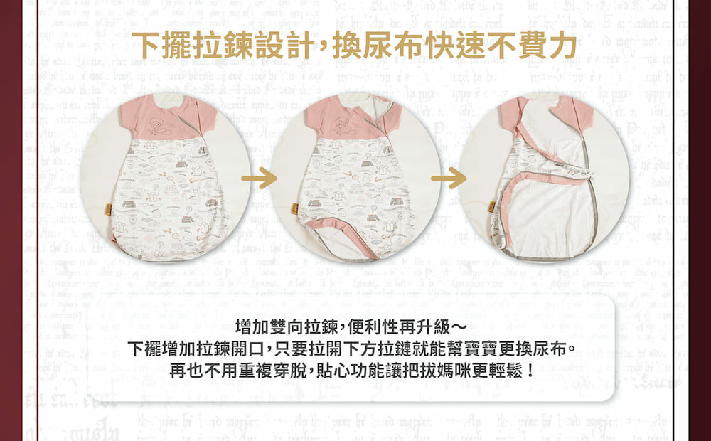 2. 下擺增加滑順雙開拉鍊設計,換尿布快速不費力。