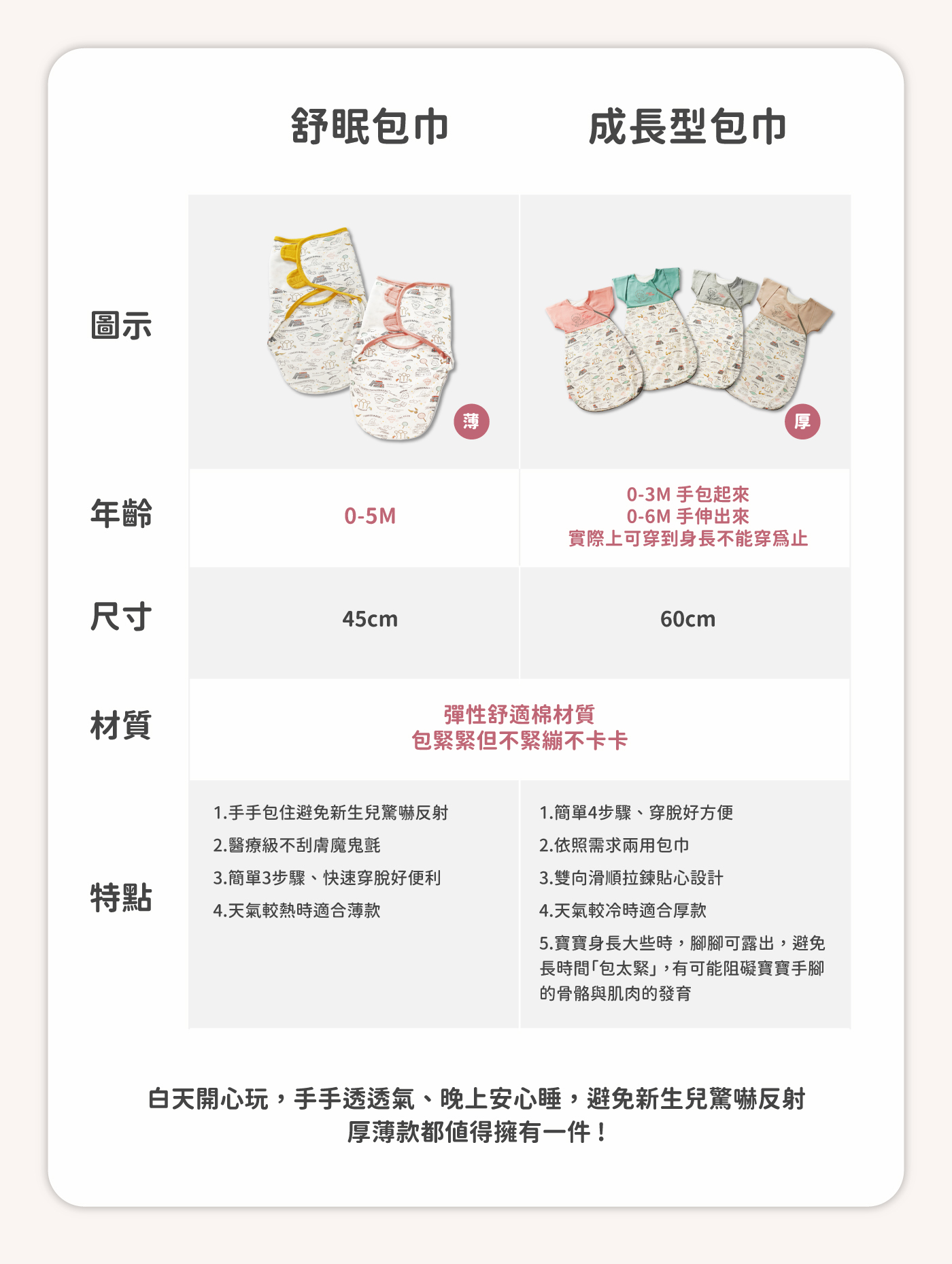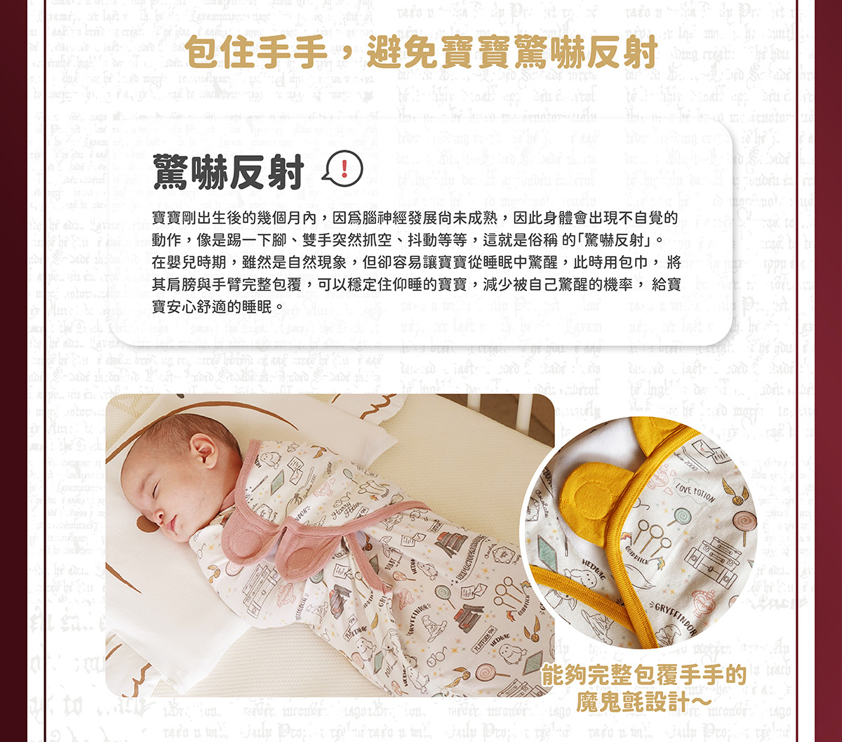 可以完整的包覆寶寶避免半夜驚醒受到驚嚇,給寶寶滿滿的安全感,