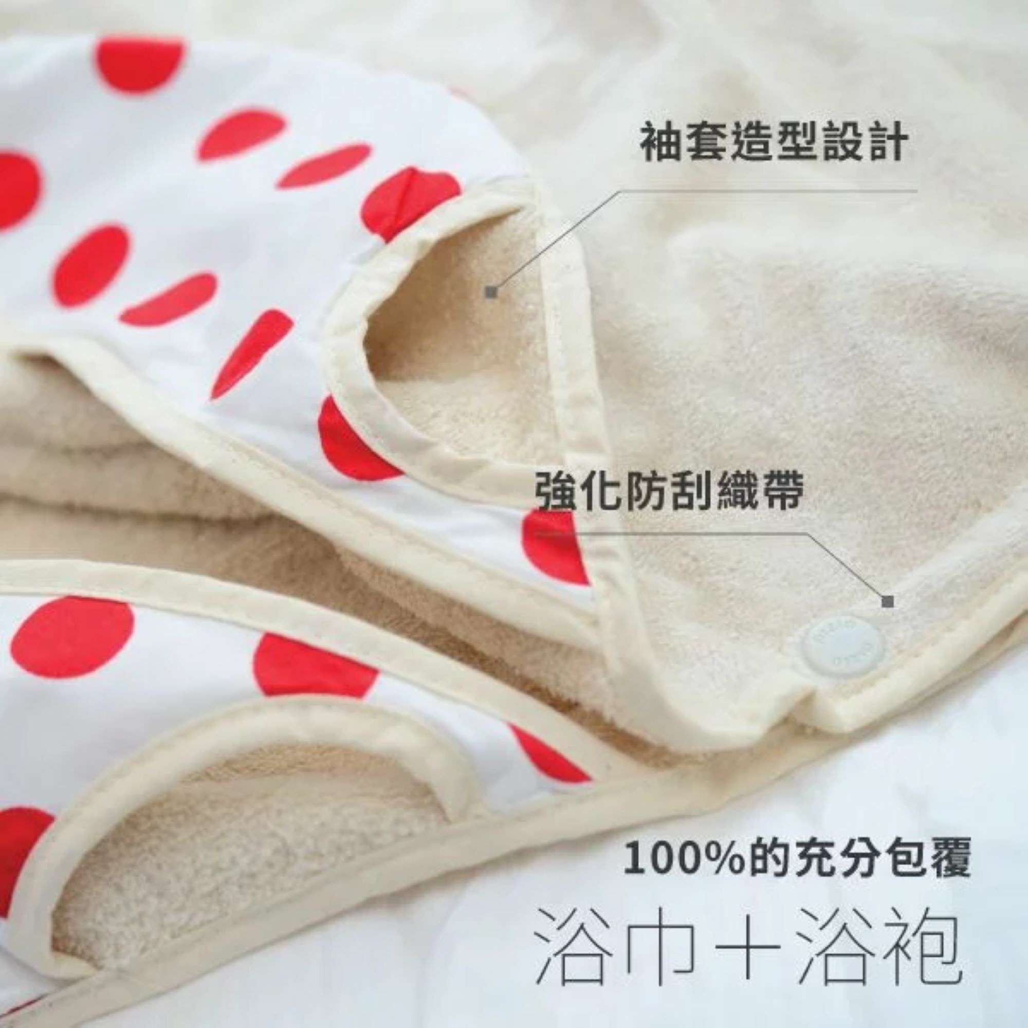 長大後,小蘑菇再度變身,成為浴袍的功能,不論洗完澡或游泳戲水,一路陪伴寶寶成長。