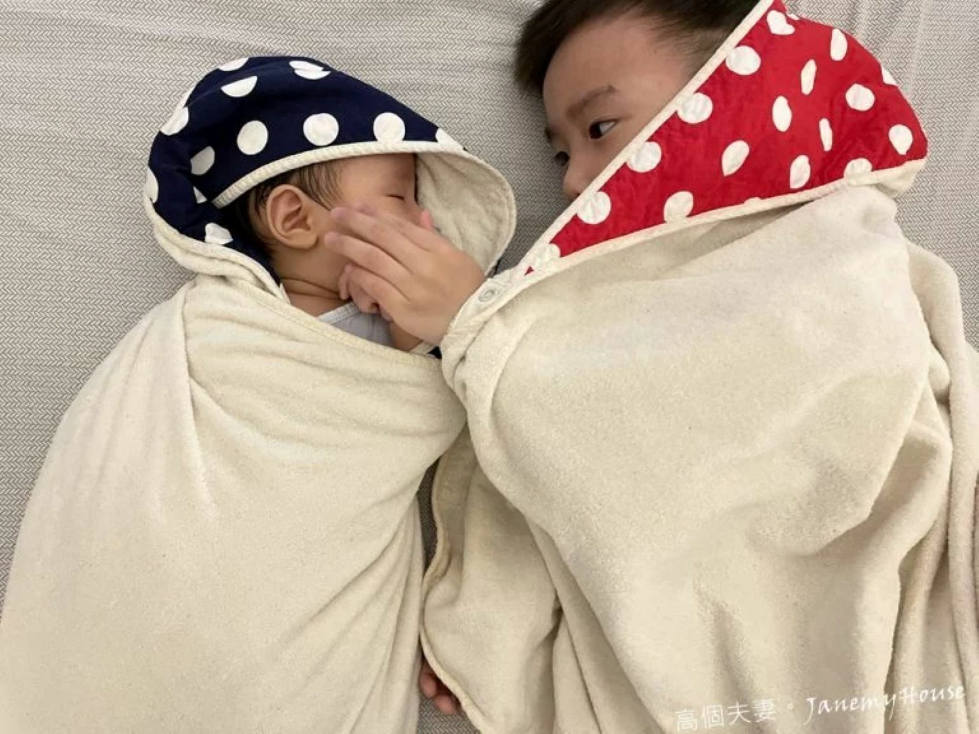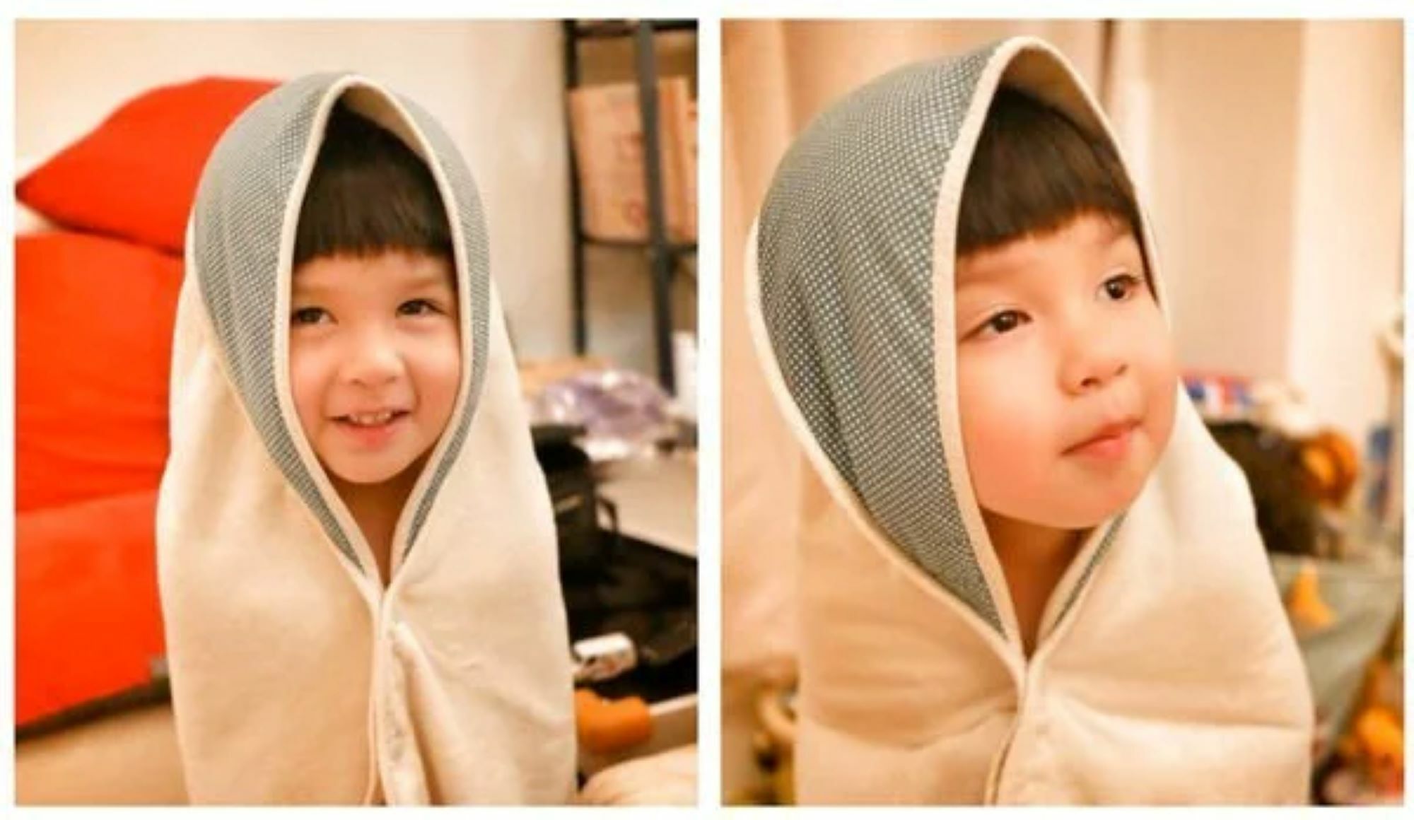 長大後,小蘑菇再度變身,成為浴袍的功能,不論洗完澡或游泳戲水,一路陪伴寶寶成長。
