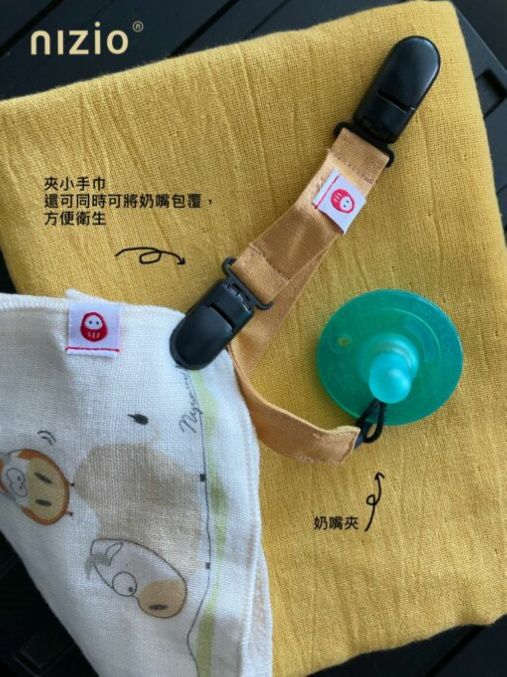 功能三:夾手帕綁奶嘴,奶嘴不吃時,直接用手帕包起來,當奶嘴收納袋,奶嘴不易髒!