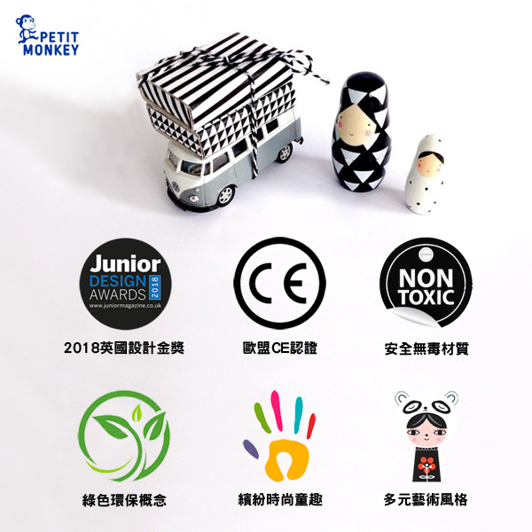 來自荷蘭Petit Monkey創立於2016年,是充滿童趣與夢想的兒童家居品牌,品牌靈感來自豐富多彩的兒童宇宙,以其鮮豔的色彩而聞名,與多位才華洋溢的藝術家合作,產品包含精緻的手繪木作擺設、可愛燈飾、個性書包、竹纖維餐具、趣味桌遊,充滿童趣的設計讓孩子們露出燦爛的笑容。
