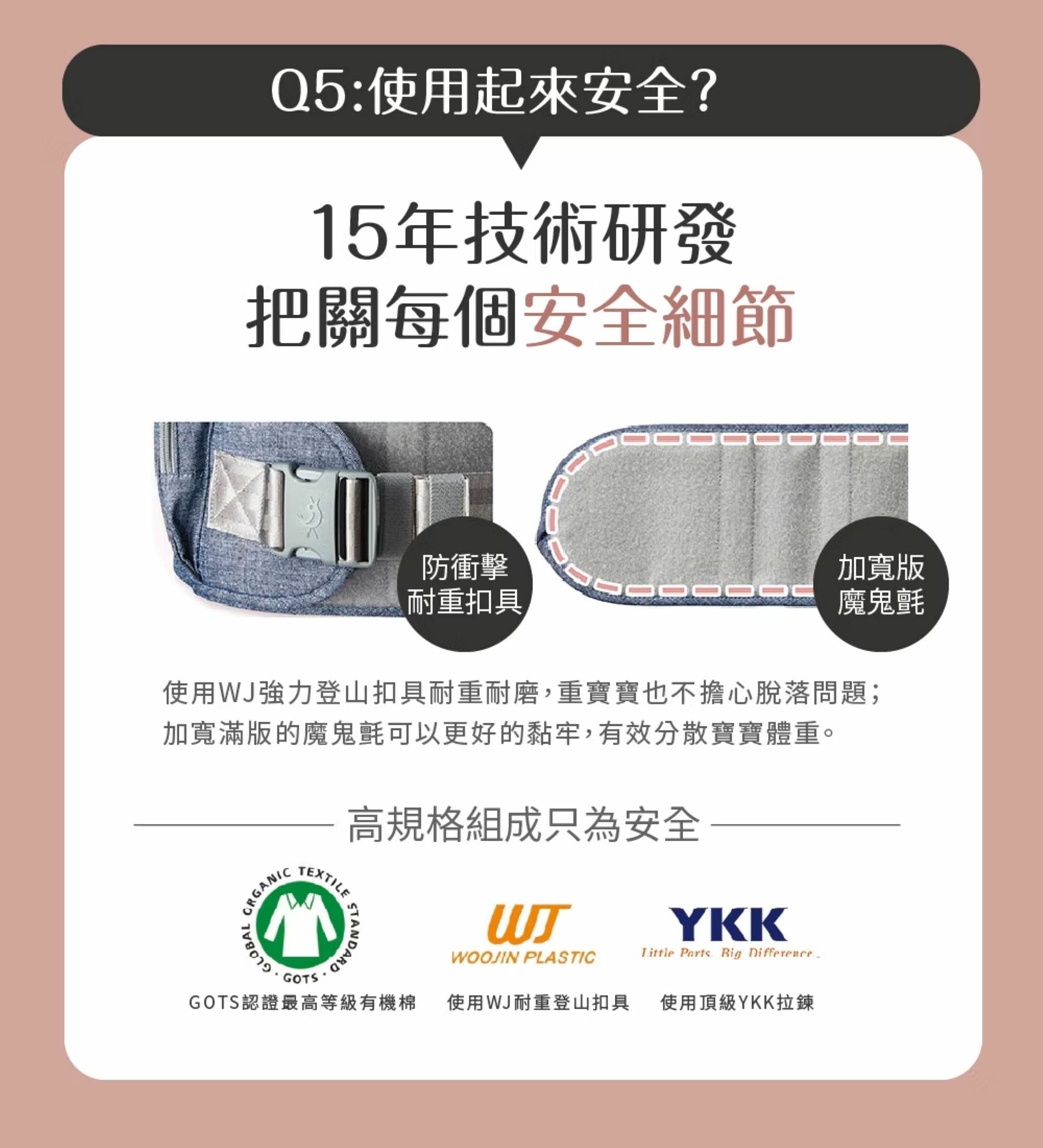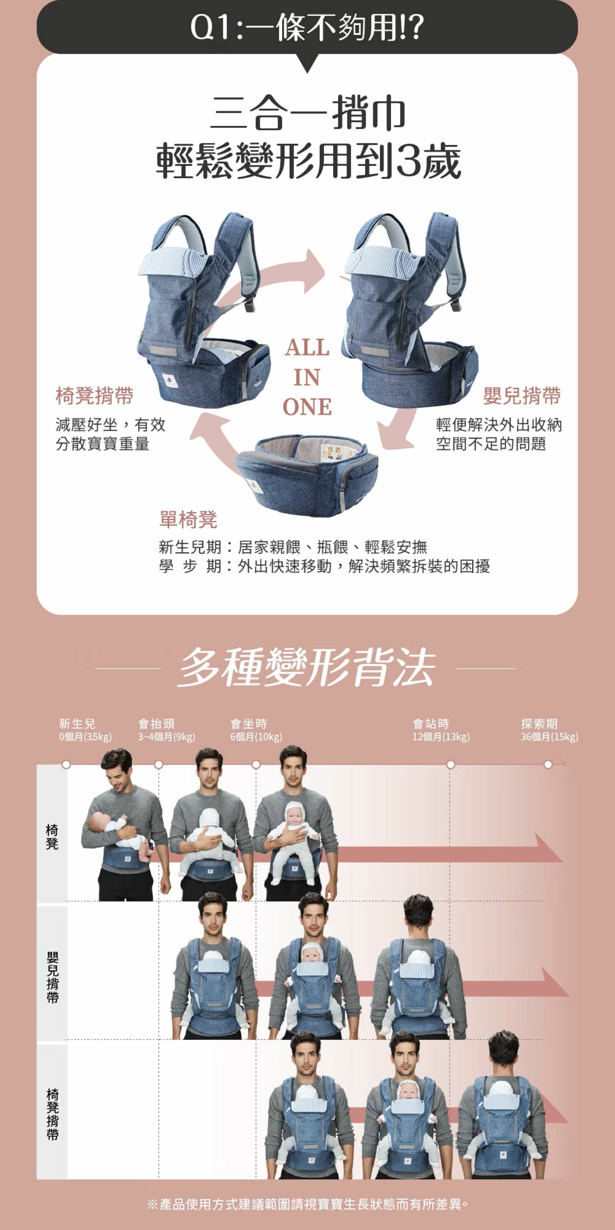 6. 三件式設計,內含背帶*1、椅凳*1、腰帶*1,贈兩款睡帽(四季款、透氣款)。