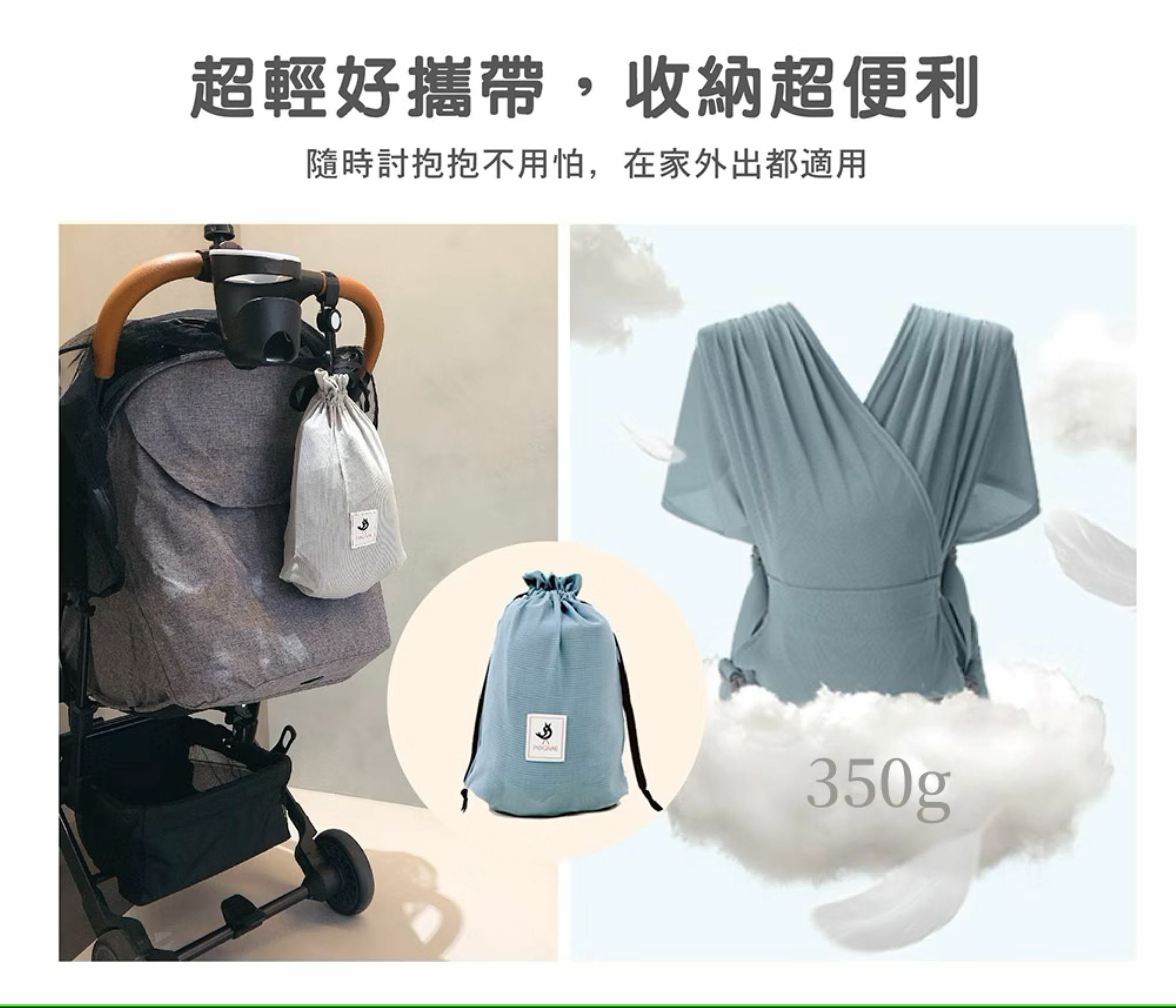1. 嬰兒包巾採用抗UV設計、20萬透氣孔、輕量350G,收納方便好攜帶