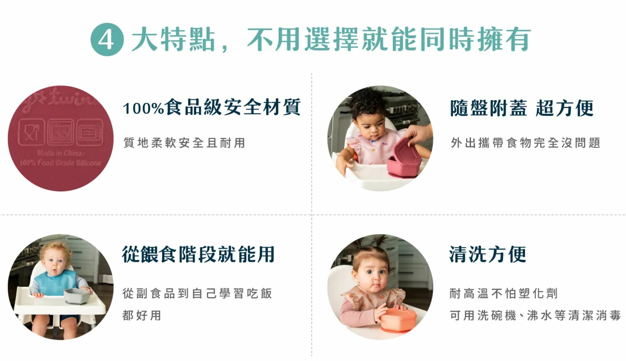 清潔方式:一般消毒鍋、洗碗機、烘碗機、微波爐,請勿使用紫外線消毒鍋,避免影響矽膠產品顏色有所差異。