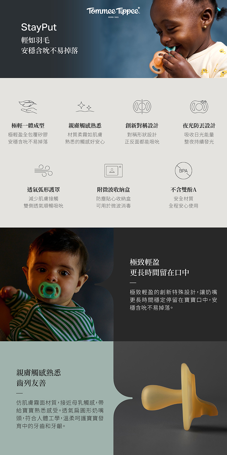 最輕的一體成型矽膠安撫奶嘴,極致輕盈的創新特殊設計,